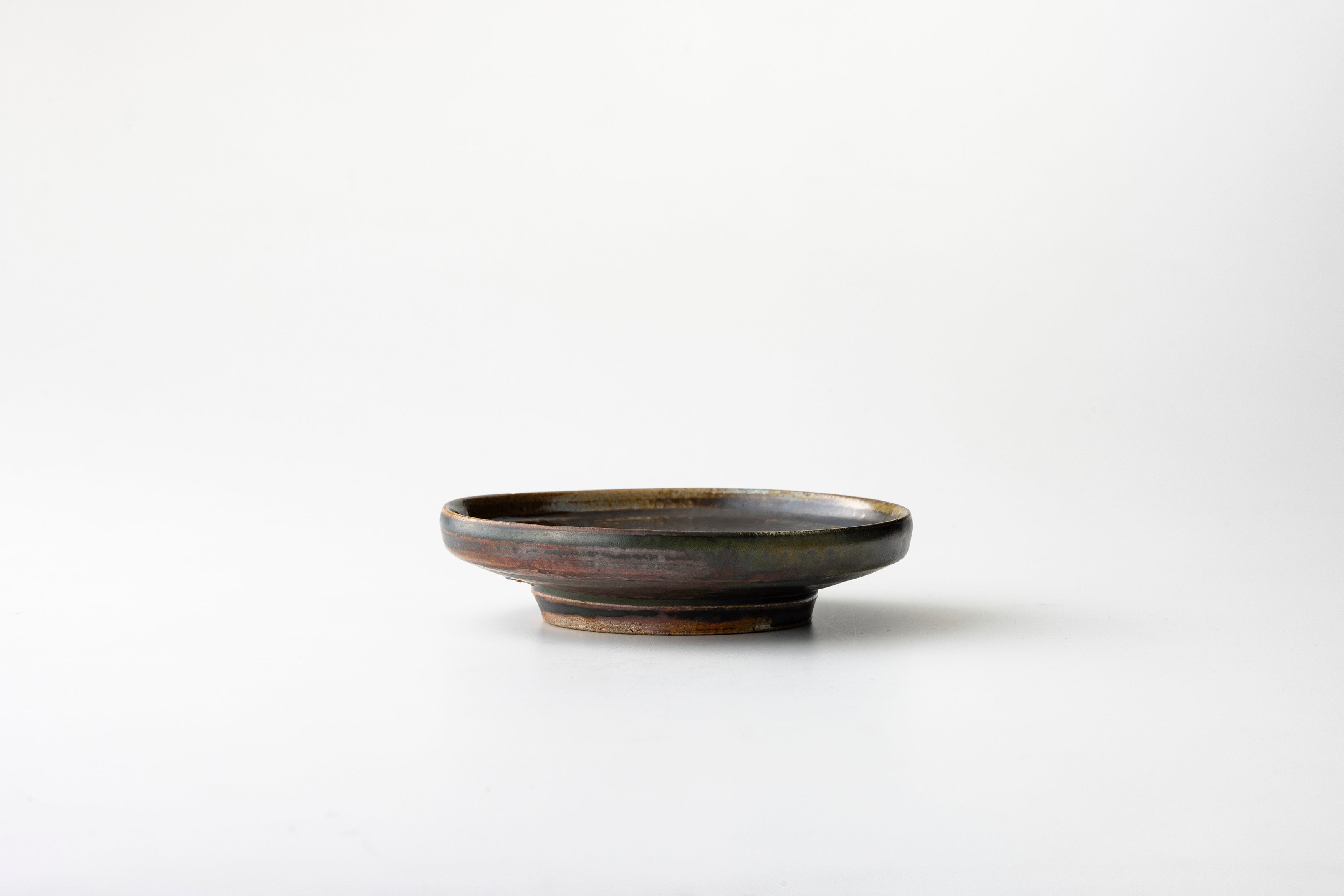 真っ平なようでほんのりくぼんだ皿面が表情に豊かさを増し、そしてささやかな立ち上がりが生む心地よい安心感。少しだけ高くした高台は陰影を映し、まるで宙に浮いているかのよう。陶芸家・土屋由起子の個性と、デザイナー・寺内ユミの感性が融合し、新しい佇まいの器を生み出しました。