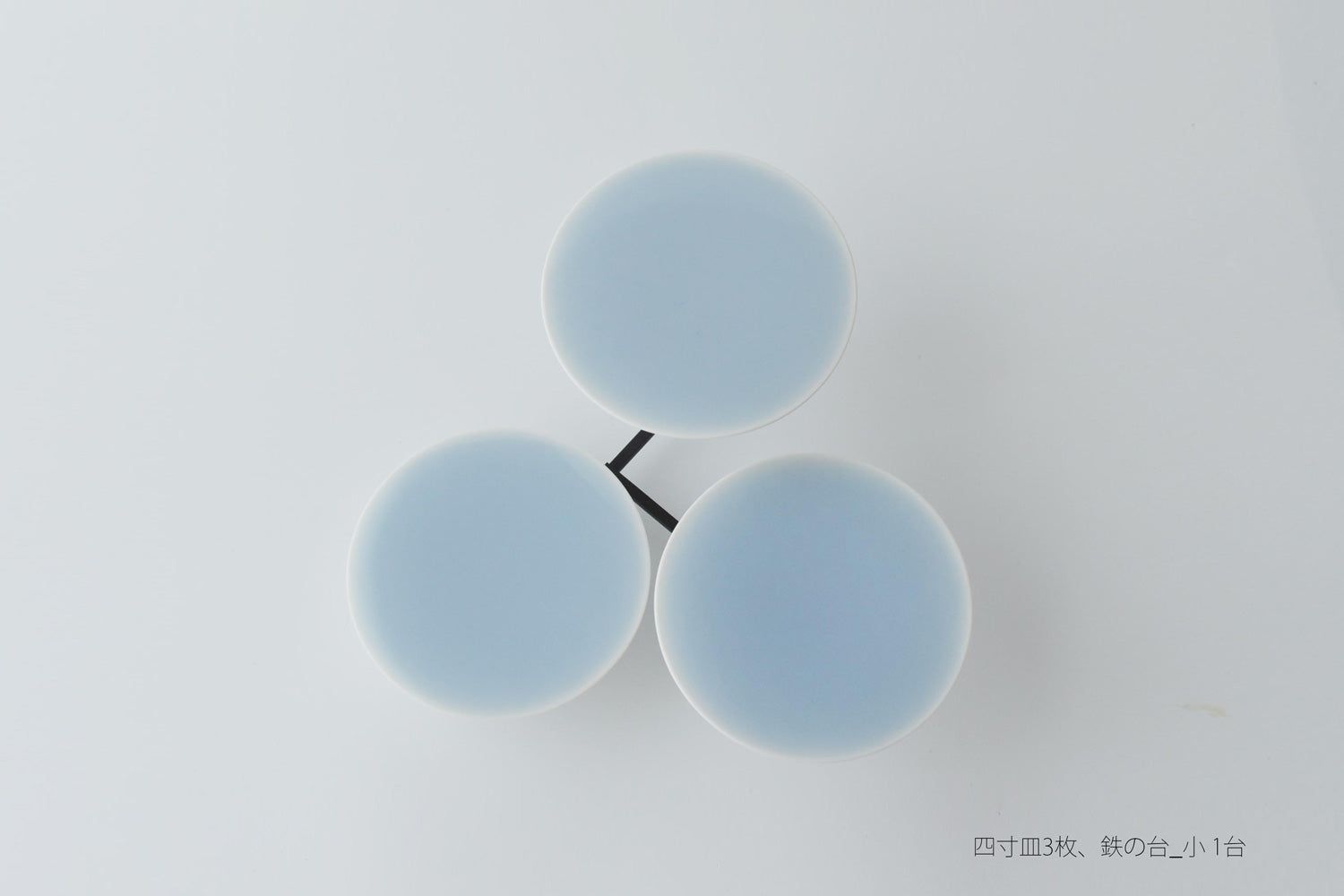 ミシナテーブルウエアに合わせて白から青へうつろう景色を製作いただきました。鉄の台と共にお楽しみください。