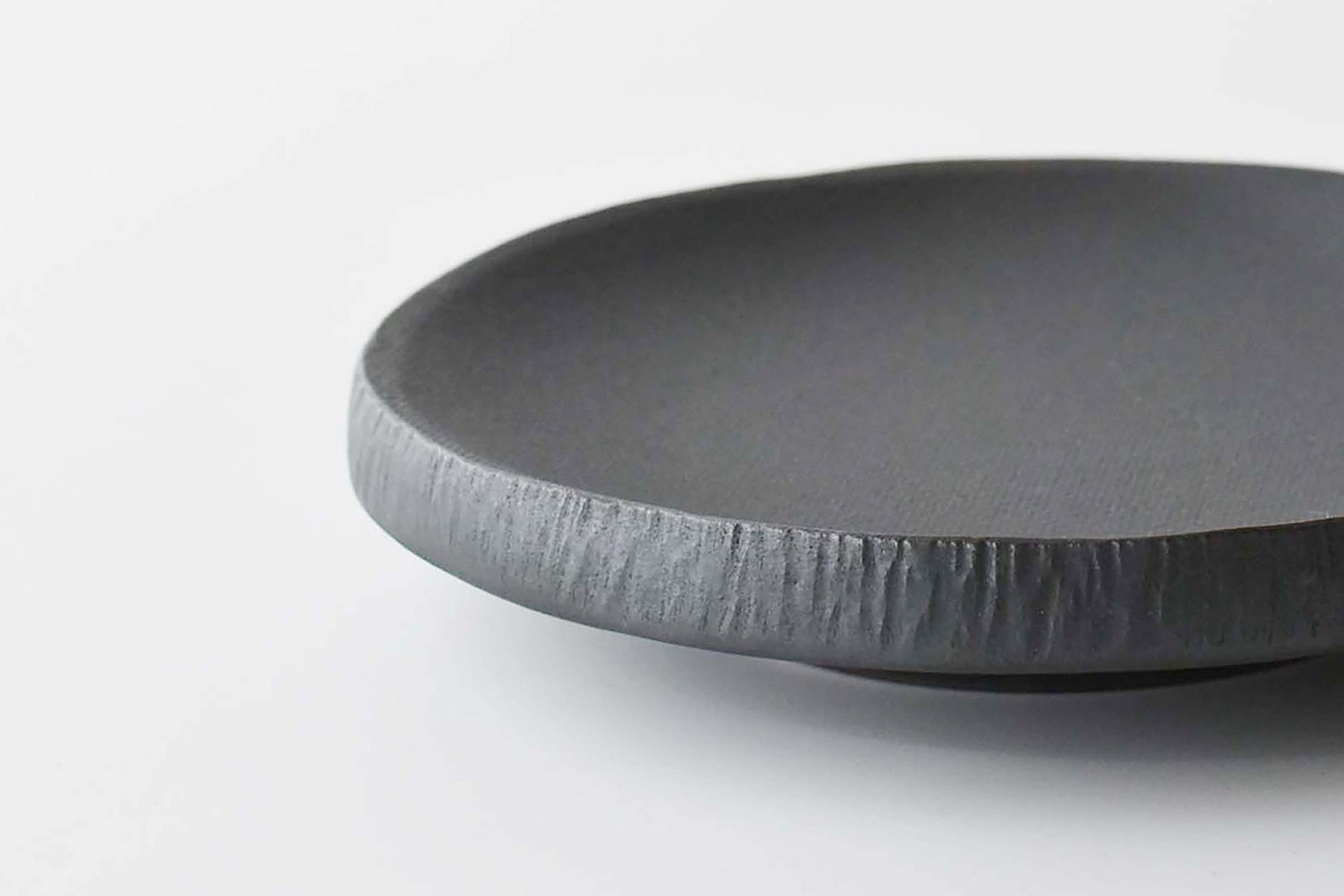 重厚感のある縁に施されたはじき鉋が、まるで金属の彫刻のような豊かな表情を生み出しています。