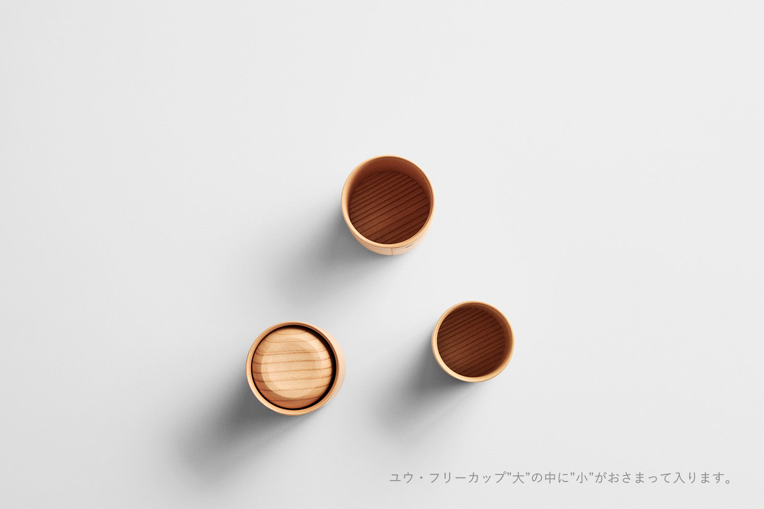 大小2つのカップは入れ子にして美しく収まり、お出かけにも、収納にも便利です。